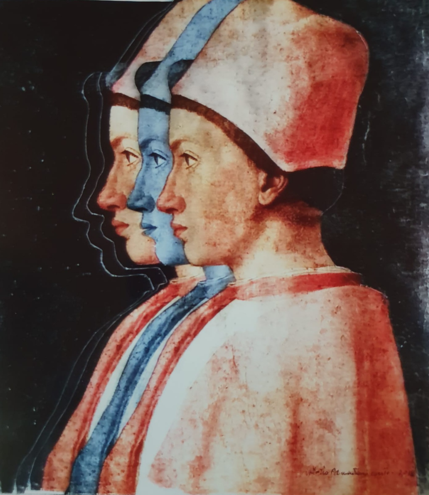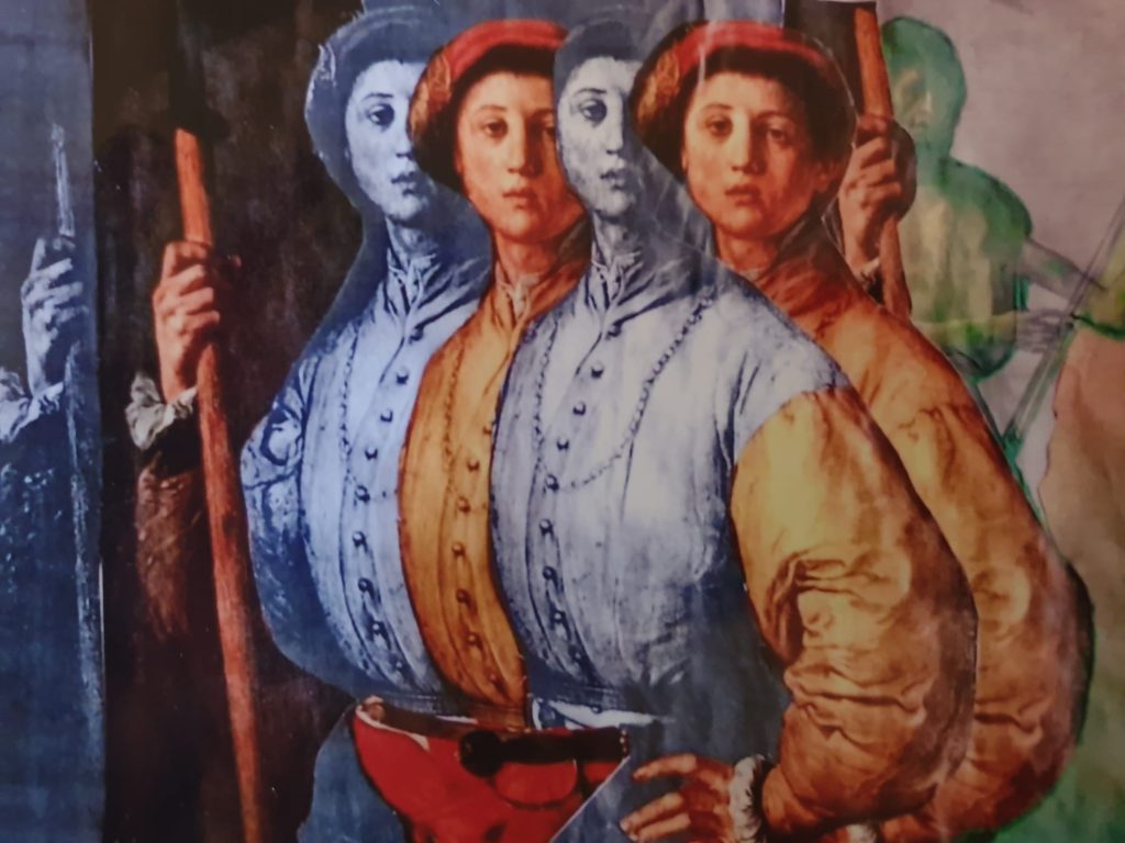 Paolo Uccello, Mantegna, Chagall, Warhol, Boccioni uniti ad immagini contemporanee, esplodono in composizioni piene di colori, riferimenti e significati che lasciano stupito chi li guarda, di grande modernità unendo passato e presente in un continuo divenire.