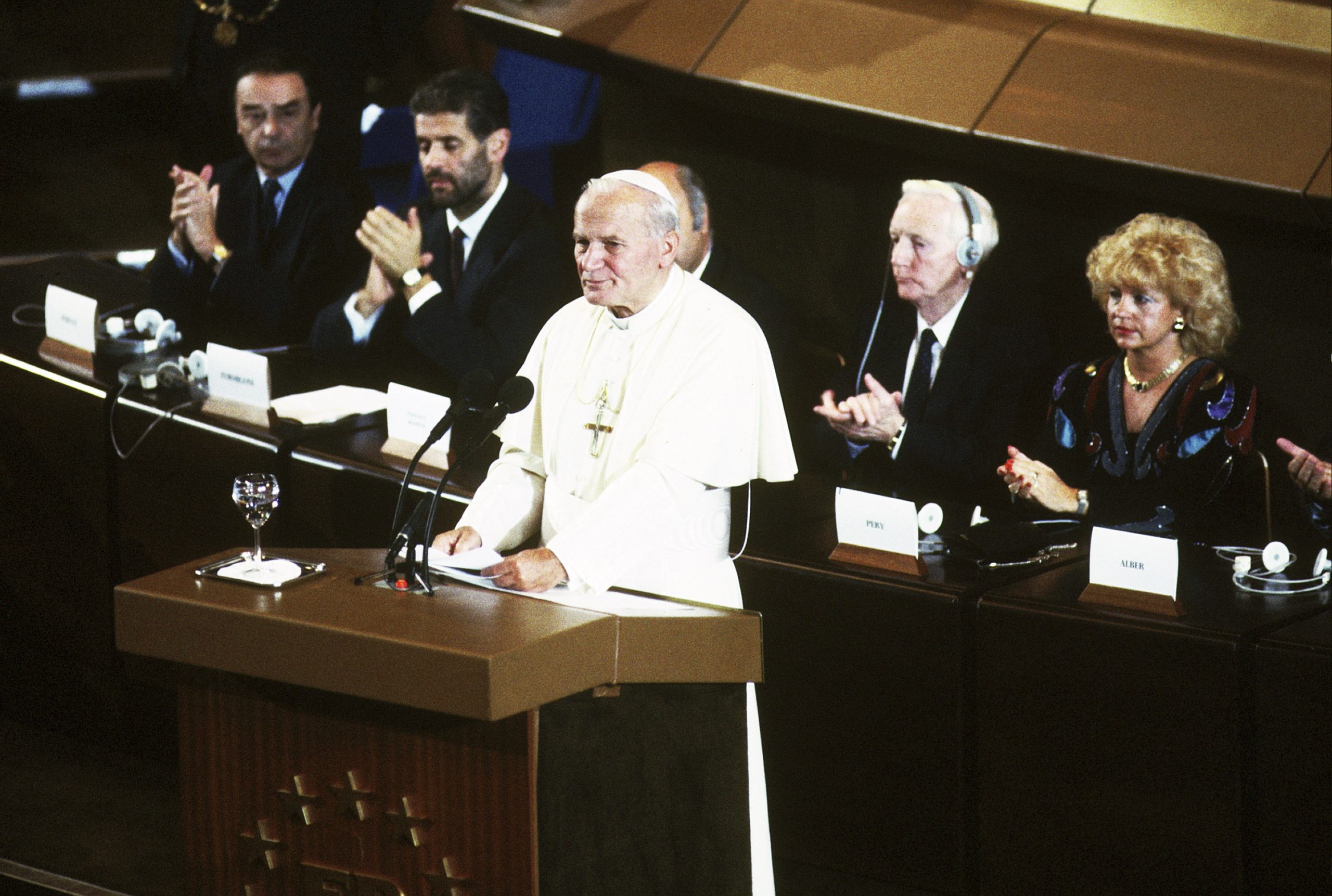 Immagine di apertura: La visita ufficiale di Giovanni Paolo II al Parlamento Europeo, 11 ottobre 1988, © European