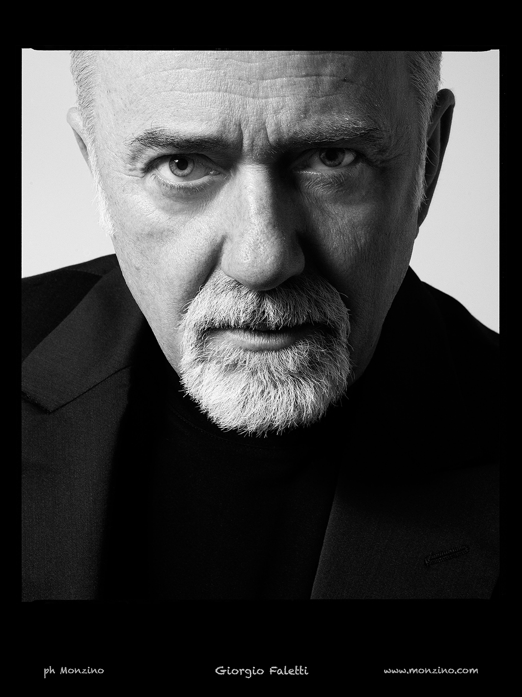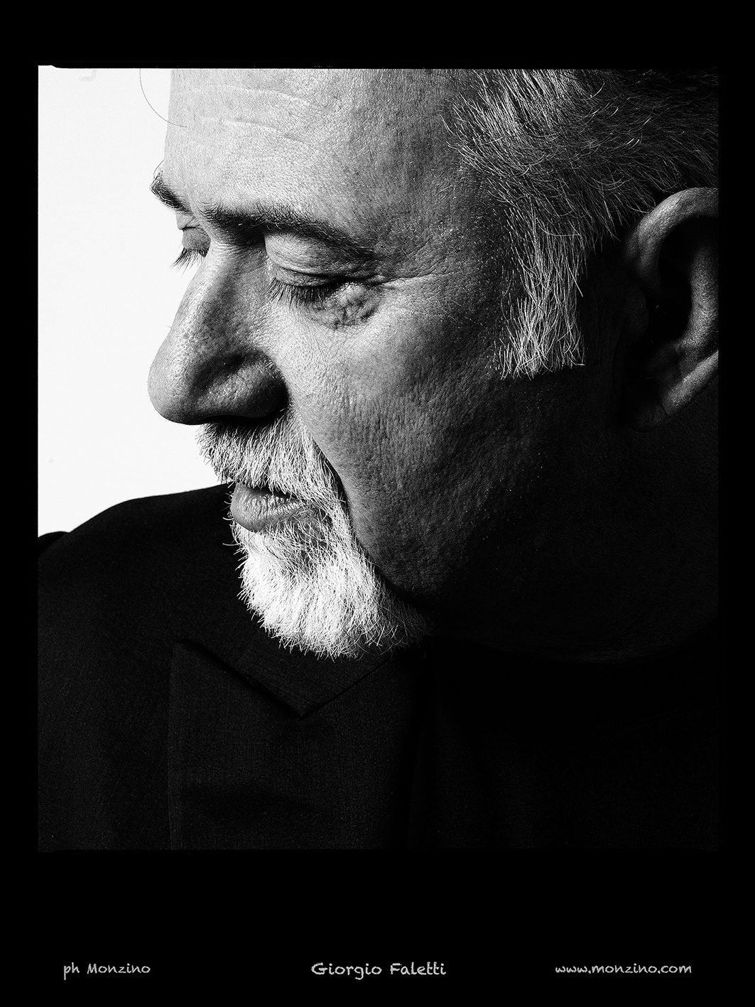 Proviamo a ingrandire la foto: guardiamo un occhio di Faletti, che ci guarda dritto, poi l’altro, poi tutti e due. Ogni occhio esprime un sentimento diverso. Ci dice tanto di lui: io ci sono, vi guardo, sono diverso da quello che pensate. Forse presagiva la malattia o la fine.