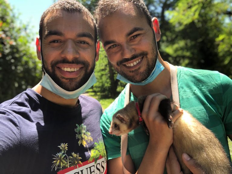 Mirko Darar è un comico di stand-up, diventato famoso per la sua partecipazione al programma Comedy Central, e in particolare per i monologhi in cui racconta il proprio coming out alla mamma siciliana e al padre egiziano – sulla carta, non proprio lo stereotipo dei genitori progressisti. Accanto a lui Leonel Santana, il suo compagno: seduti sul divano della casa milanese in cui convivono, mi guardano attraverso lo schermo del computer. Ogni tanto nell’inquadratura spunta una cagnolina che cerca l’attenzione dell’uno o dell’altro, corollario perfetto dell’armonia domestica che emana dalla loro immagine.