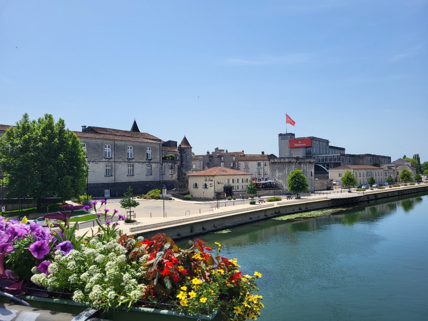 La torre del castello di Cognac, molto danneggiato alla Rivoluzione francese, situato proprio sulla riva sinistra della Charente ci fa tornare indietro nel tempo e pensare al Re Francesco I che qui nacque nel 1494. Un grande Re, alto 1 m 95, amante delle arti e delle lettere, appassionato di architettura. Soprannominato le Roi Batisseur riuscì a far venire in Francia Leonardo da Vinci che visse ad Amboise e da ricerche recenti pare abbia soggiornato anche qui a Cognac.
