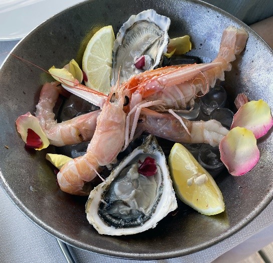 Si comincia, non a caso, con Ostriche e Scampi. Il menù è, come in tutti i trabocchi, fisso a degustazione, ovviamente imperniato su una proposta ittica. Sapori articolatamente semplici caratterizzano il Calamaro soffice in crema al nero e piselli.