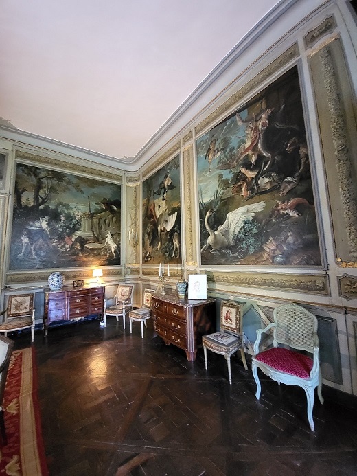 Il Marchese de la Faye fece anche decorare il bel salotto verde da Jean-Baptiste Oudry, artista famoso per le nature morte e ritratti di animali, pittore ufficiale delle cacce di Luigi XV.