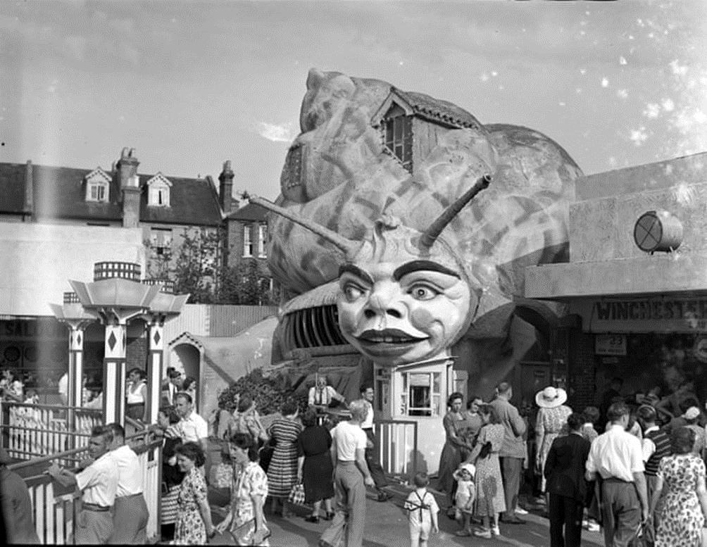 Ottanta km navigabili separano il sobborgo londinese di Moorgate dalla quasi omonima Margate, rinomata stazione balneare ottocentesca alla foce del Tamigi. Cara a William Turner e a T. S. Eliot – che qui compose “La terra desolata” – è la città di Dreamland, il primo parco di divertimenti d’Europa. Il suo ottovolante in legno, la “Scenic Railway” (1920), è considerato monumento nazionale. Lindsay Anderson vi girò uno dei primissimi cortometraggi del free cinema, “O Dreamland”  (1953), 12 minuti che sono nella storia del cinema: la domenica della classe operaia londinese fra le attrazioni di questa storica Mirabilandia.