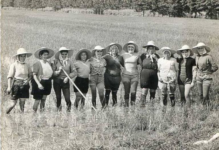 Foto di apertura: Gruppo di mondine in risaia, anni ’50 – Foto pubblico dominio da wikipedia.org