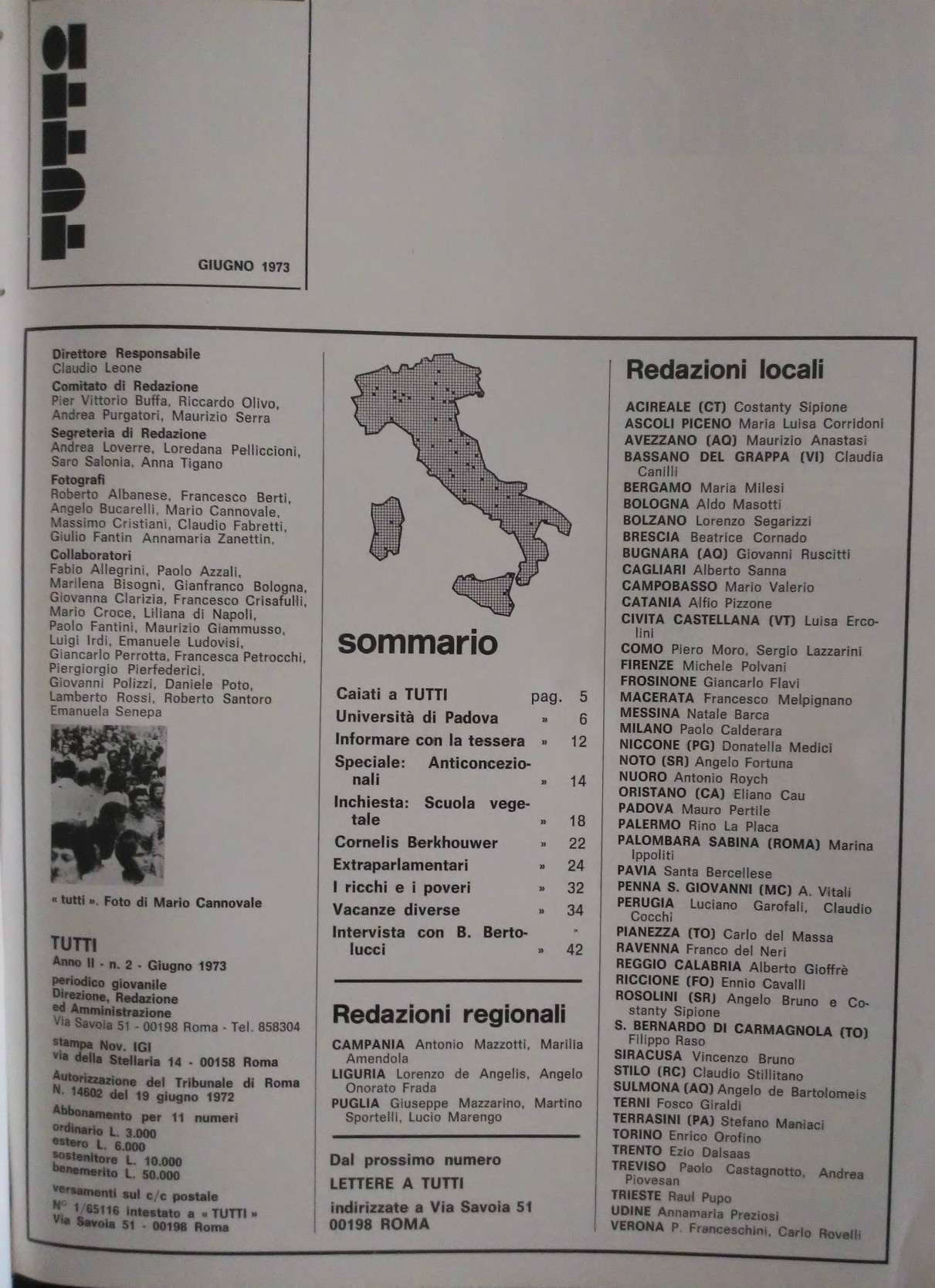 Con Andrea, diciannovenne, insieme a decine di carissime amiche “redattrici” e di carissimi amici “redattori” di Roma e di tutta Italia, quasi tutte e quasi tutti “under 21” (allora era ancora la maggiore età : portata a 18 nel 1975), a Dicembre 1972, abbiamo dato vita a TUTTI“, giornale giovanile europeista terzomondista ambientalista indipendente degli anni settanta, “rete”, avremmo detto oggi, dei direttori dei giornali studenteschi di tutta Italia di allora”.