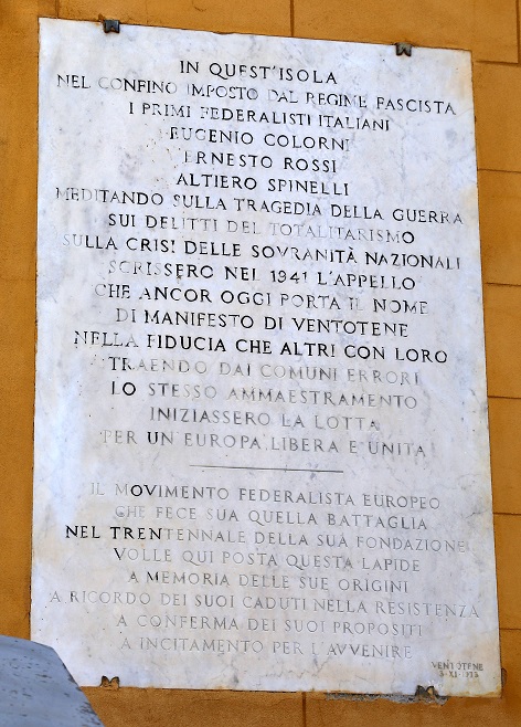Foto di apertura: Castello di Ventotene (municipio), lapide manifesto di Ventotene – da commons.wikimedia.org