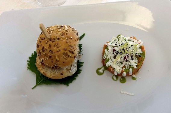In effetti la sua è una cucina di buon tocco, ancorché di tecnica non forzata e parte, come d’uopo, dai sapori del territorio per innovare in modo intelligente, tenendo conto di non esagerare con i grassi e la pesantezza.