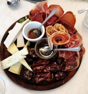 Selezione di salumi e formaggi fatti di persona personalmente da papà Mario con composte del giorno.