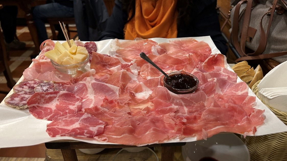 Non è un ristorante in senso stretto, ma una salumeria: ti portano un gigantesco piatto pieno di salumi locali assolutamente straordinari: Culatello DOP, Prosciutto Crudo di Parma, Spalla Cotta di San Secondo (il preferito del Maestro!) Coppa Piacentina, Strolghino di culatello, Lardo pancettato, Mortadella, Pancetta.