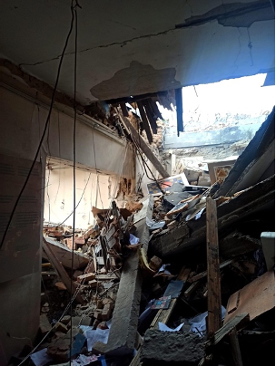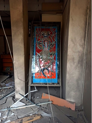 Le luminose aule artistiche in cui avevamo lavorato un’ora prima sono danneggiate e devastate. Uno spazio artistico dove tutto era pieno di bellezza è stato rovinato. Opere uniche decoravano le pareti dell’Accademia riempiendo i locali di luce, energia creativa, fede e speranza, ora non restano che dolore e ricordi, e poi il senso di disperazione… perché è possibile ricostruire i muri, ma come non si può ricreare le opere d’arte perdute.