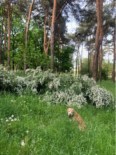 Dopo il lavoro, mi piace passeggiare nel nostro parco con il mio cane. Soprattutto ora, quando tutto intorno non è nemmeno verde, ma smeraldo di tutte le sfumature possibili: erba, alberi, tra loro aiuole vivaci di fiori, e poi boccioli di peonie arboree già gonfi, lucenti e pronti per aprirsi. Tutto ciò dona un senso di sicurezza e l’opportunità, almeno per un’ora, di dimenticare gli orrori della realtà di oggi.