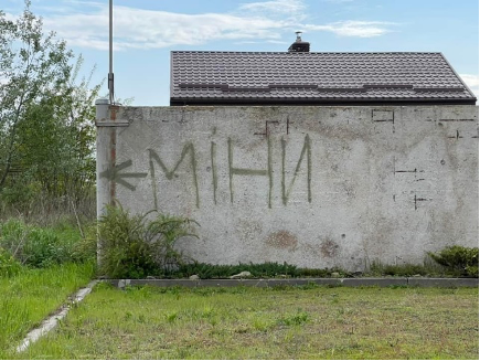 Foto dell’Autrice, sul muro è scritto “Mine” per avvisare chi s’avvicina