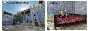 Vicino alla madrasa si erge il famoso minareto Kalta Minor con un diametro alla base di 14,2 metri, splendidamente rivestito di ceramiche colorate, nel progetto doveva diventare la torre più visibile dell’Asia Centrale e raggiungere 80 metri di altezza, ma alla morte del committente Muhammad-Amin khan, nel 1855, la costruzione fu interrotta e la torre si fermò a 26 metri. Molte leggende ammantano l’incompiutezza della sua costruzione, la più famosa riguarda il khan di Bukhara che, quando seppe della costruzione del grande minareto, fece un accordo con l’architetto che gli promise di costruirgliene uno più grande a Bukhara. Il khan di Khiva lo scoprì e buttò l’architetto giù dal minareto. Al di là delle leggende la verità più probabile è che la sua edificazione si dovette interrompere per seri problemi strutturali, ma il suo fascino resta indiscusso e ammirando la superficie interamente ricoperta da piastrelle smaltate a fasce con motivi azzurri, verdi e rossi, con una decorazione unica in tutta l’Asia Centrale, si coglie la testimonianza di uno splendido periodo. Per quanto riguarda gli abitanti di questa unica al mondo città-museo, a parte il personale quasi invisibile della madrasa-hotel magnifica in cui ho soggiornato, che si presume abitino in una zona riservata della madrasa stessa, tutti gli altri sono i mercanti di stoffe, tappeti, sciarpe, cappelli e altri oggetti turistici disseminati per tutte le vie, con cui non si può far altro che mercanteggiare e che non si sono rivelati aperti a nessun’altra conversazione. Né si può capire dove in realtà alloggino. La vita all’interno della città sembra oggi cristallizzata al tempo del suo splendore, senza che il passare dei secoli l’abbia trasformata. È comunque una magnifica finzione che ti coinvolge e ti trattiene fuori dal tempo per tutto il periodo della permanenza. L’UNESCO ha incuso Khiva nell’elenco del suo Patrimonio culturale dal 1990 e nel 2024 è stata insignita del titolo di Città del Turismo del mondo Islamico.