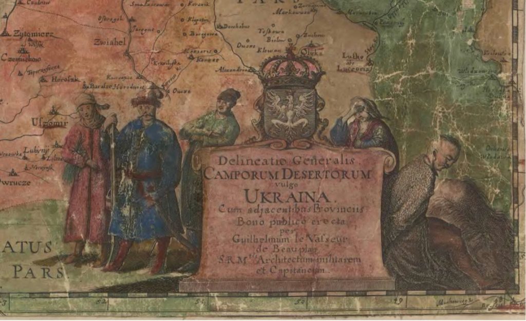 Tra i lavori cartografici chiave relativi alle terre ucraine del periodo in questione troviamo Radziwiłł, Nicolas Sanson, Frederik de Wit, la famiglia Blaeu, Moses Pitt, Johann Homann, Matthäus Seutter. Oltre alla già citata mappa del 1613, “Descrizione dell’Ucraina” (1648-1651) è considerata l’opera più scrupolosa, risultato di 17 anni di lavoro in Ucraina dell’ingegnere francese Guillaume Le Vasseur de Beauplan. Fu proprio la “Descrizione dell’Ucraina” a plasmare la percezione europea del Paese tra il XVII e il XVIII secolo. Di questa mappa si hanno molte informazioni.