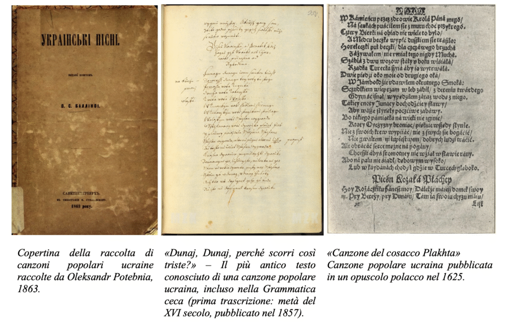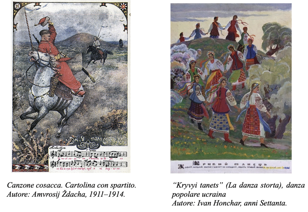 Una cosa è certa: se si vuole davvero capire l’anima ucraina, non si può fare a meno di conoscere le canzoni popolari. In Ucraina si canta fin dall’antichità, si canta molto e per diversi motivi. Si canta quando si è tristi o felici, si canta per cullare il bambino o per chiamare l’amata ad un appuntamento, si canta per prendere in giro gli amici o per aiutare i parenti del defunto a piangere la loro perdita, si canta durante un lungo viaggio o per sopportare un lavoro noioso, si canta la messa in chiesa e le marce militari. Rammento anche con grande affetto che ai tempi della mia infanzia, dopo un banchetto festivo, gli ospiti non avevano fretta di alzarsi da tavola e a volte rimanevano per diverse ore solo per il piacere di cantare insieme.