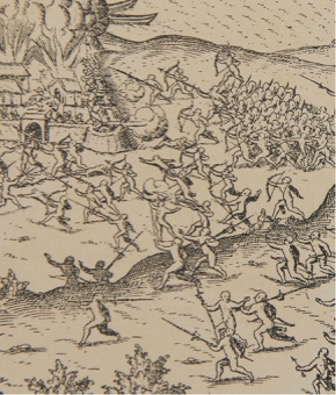 Sin dal ‘500 i contatti non furono amichevoli. Juan de Solis, scopritore del Mar de la Plata, finì divorato dai Charrua.Sebastiano Caboto, il primo a risalire il rio Paraguay, scampò per un pelo al massacro, per mano dei Timbu, della guarnigione che presidiava la fortificazione di Sancti Spiritus. Gli spagnoli non furono da meno.