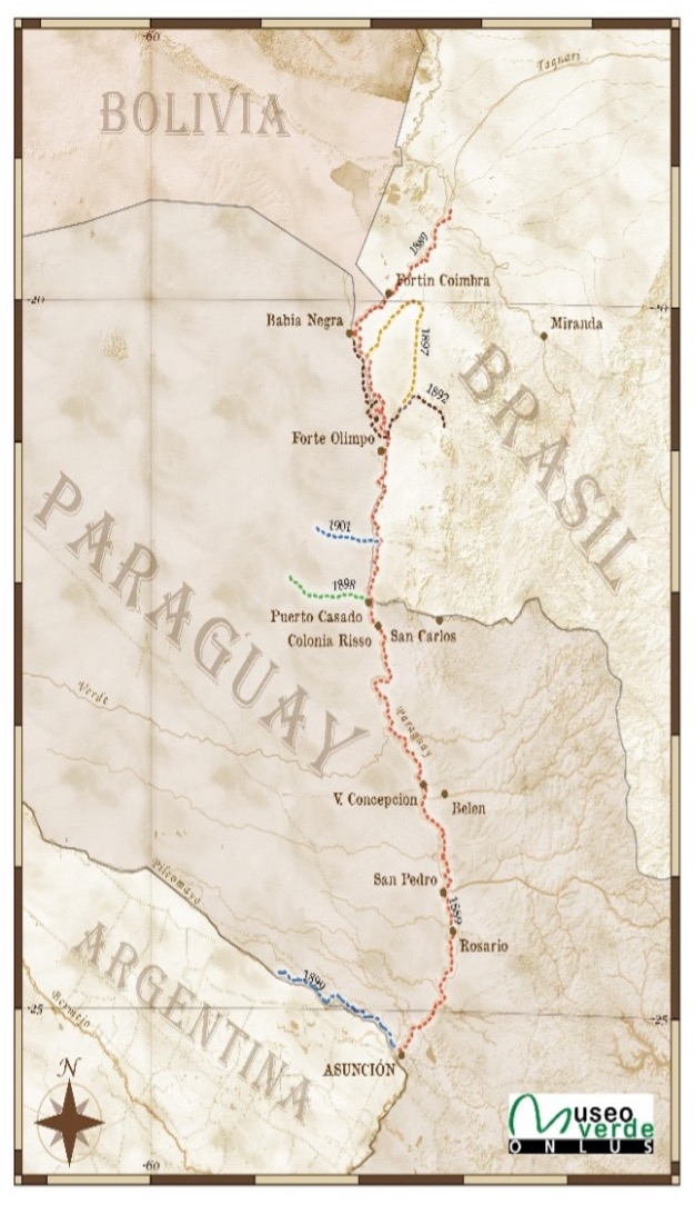Ciò nonostante la pressione del cosiddetto mondo occidentale aumenta. La colonizzazione dei territori situati nella parte alta del rio Paraguay avanza. La Bolivia, che ha perso con la guerra del Pacifico l’accesso al mare, cerca sbocchi ad est, verso le vie d’acqua che conducono all’ Atlantico. Viaggiatori ed esploratori spinti da motivazioni politiche ed economiche ma anche attratti e affascinati dalle culture indigene di terre assai lontane si addentrano in territori sconosciuti.