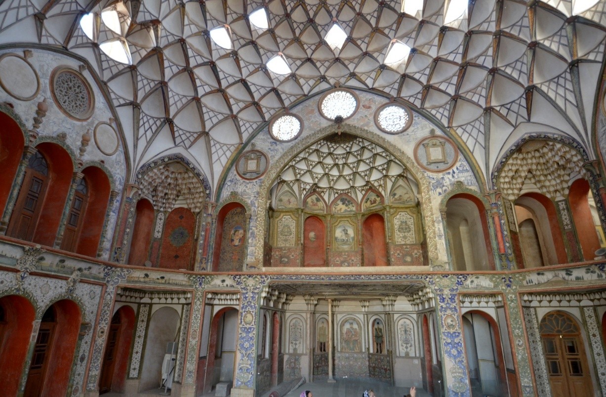 Visitiamo brevemente anche la vicina Khane Ameriha (in apertura la foto del cortile più sontuoso), una residenza privata costruita nel XVIII secolo e successivamente rinnovata da Saltane Ameri che vi abitava con la sua famiglia. Era il responsabile della sicurezza della strada fra Kashan e Teheran (la nuova capitale dalla fine del Settecento per volere del primo Shah della dinastia Qajar) e della consegna di armi all’esercito dello Shah.
