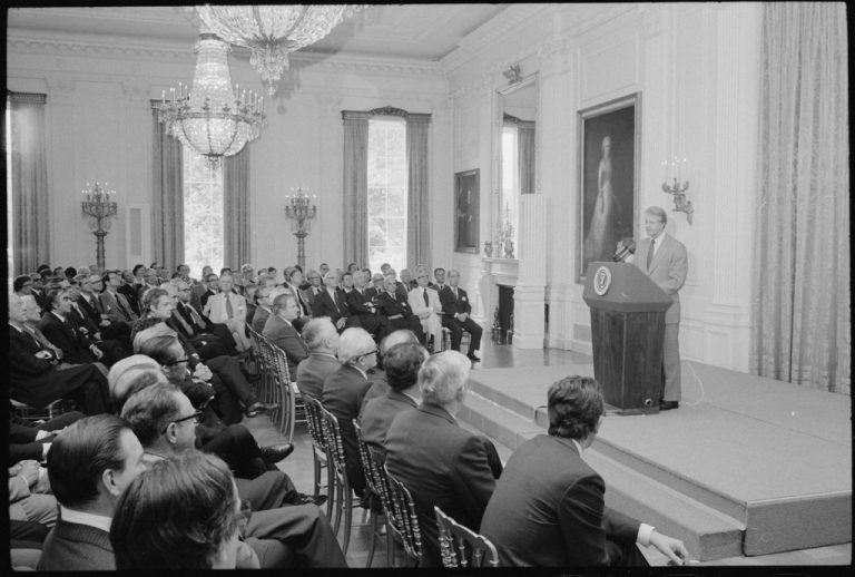 Immagine di apertura: Jimmy Carter ospita alla Casa Bianca l’incontro della Trilateral Commission, 12 giugno 1978, Wikimedia Commons